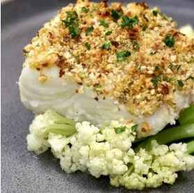 Try our Almond-Crusted Cod with Cauliflower Rice, where the almond adds texture and healthy fats, and the cauliflower rice offers a low-carb alternative that aids liver detoxification, keeping the meal light yet nourishing.